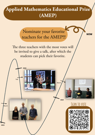 The Applied Mathematics Educational Prize (AMEP) is almost here and we need YOU (the students) to nominate candidates for this event!