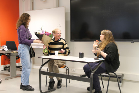 On the 4th of December, the Education Committee celebrated Hans Zwart and his work and dedication to students through a Research Researched in his honour. During this activity, we walked with Hans through many of the aspects of his carreer: from his PhD and view of research prizes to his view and approach to education and how he catered to students. Finally, Hans was celebrated one last time by receiving a bouquet of flowers for all his efforts towards students.